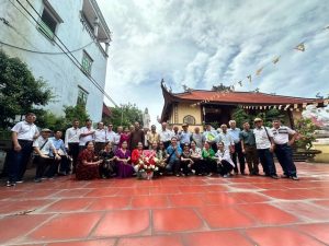 Ảnh Phật Tử Mỹ đang thỉnh chuông cúng cháo Chùa Song Quỳnh, Gia Bình, Bắc Ninh, 2025